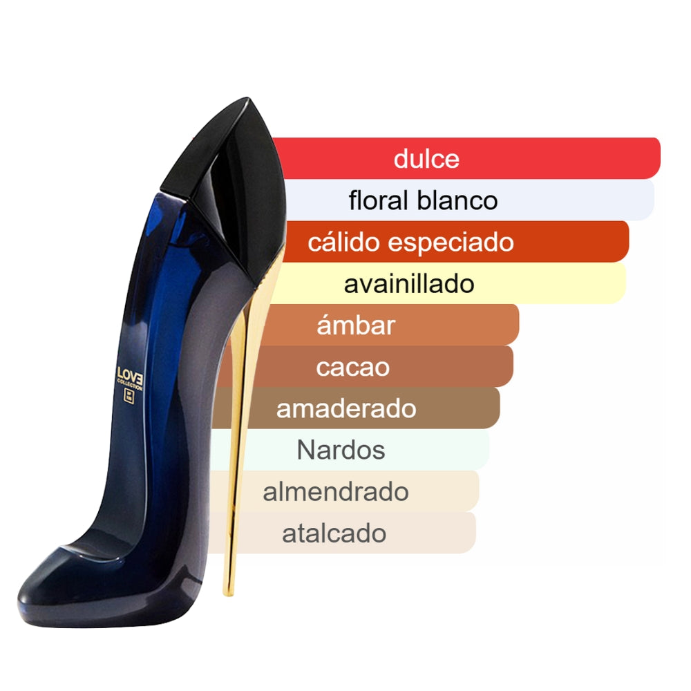 LOVE COLLECTION N° 126: Inspirado en Good Girl de Carolina Herrera, este perfume Ámbar Floral celebra la dualidad femenina con notas adictivas de café y almendra que dan paso a un corazón opulento de nardo y jazmín. Su lado más enigmático se revela en un fondo de cacao y haba tonka, convirtiéndolo en un arma de seducción poderosa y sofisticada, diseñada especialmente para la noche y las ocasiones especiales.